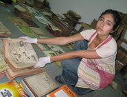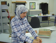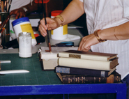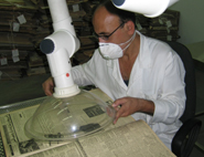 The Weeding Committee in charge of assessing the state of books and determining the fate of documents that are extremely contaminated by moisture, fungi and insects.