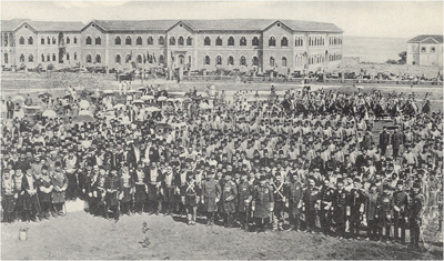 وقد حمل المستشفى آنذاك اسم المستشفى الحميدي في حين حملت المدرسة اسم المدرسة الحميدية، تيمّنًا بالسلطان عبد الحميد الثاني، الذي أنجز هذا المشروع الضخم آنذاك في عهده وافتتحه حاكم بيروت آنذاك الوالي خليل باشا رسميًّا في 19 آب 1907، بمناسبة عيد السلطان عبد الحميد الثاني وبحضور حشد من القناصل ووجهاء بيروت، واعتبر حينها المشروع الأكبر للتنمية الحضريّة في بيروت. أهميّته:على مدى السنوات السابقة، احتضن مبنى الصنائع العديد من مؤسّسات الدولة، إلى ان استقرّت فيه في العام 1959 كليّة الحقوق والعلوم السياسيّة حتى العام 2006، حيث انتقلت إلى مقرّها الجديد في الحدث، متأخّرة 7 سنوات عن قرار مجلس الوزراء عام 1999 الذي قضى بتخصيصه ليكون مبنى رسميًّا للمكتبة الوطنيّة.وفي العام نفسه، أيّ 2006، قدّم أمير دولة قطر الشيخ حمد بن خليفة آل ثاني هبة إلى الدولة اللبنانيّة لبناء المكتبة الوطنيّة المستقبليّة (بما فيها ترميم المقرّ الحاليّ للصنائع وبناء المساحات الجديدة). مميّزاته: