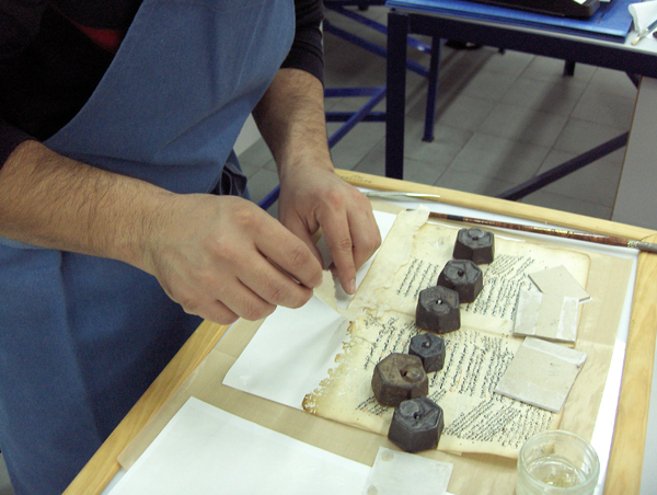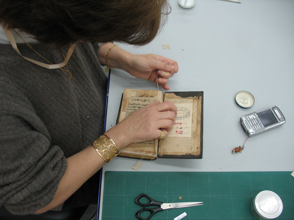 Las diferentes etapas de la restauración de un viejo libro siríaco del año 1740
