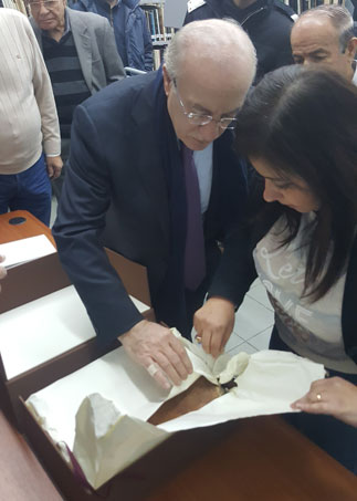 The Minister of Culture, Dr. Ghattas Khoury, visited the temporary premises of the Lebanese National Library at the Port of Beirut where he toured the various sections and services including the cataloguing of books and periodicals, the restoration workshops and the stacks where old Collections are stored. The visit took place in the presence of the Project Manager, Mr. Gerard Khajerian, and the Project Executive Director, Mrs. Gelnare Atoui Saad.